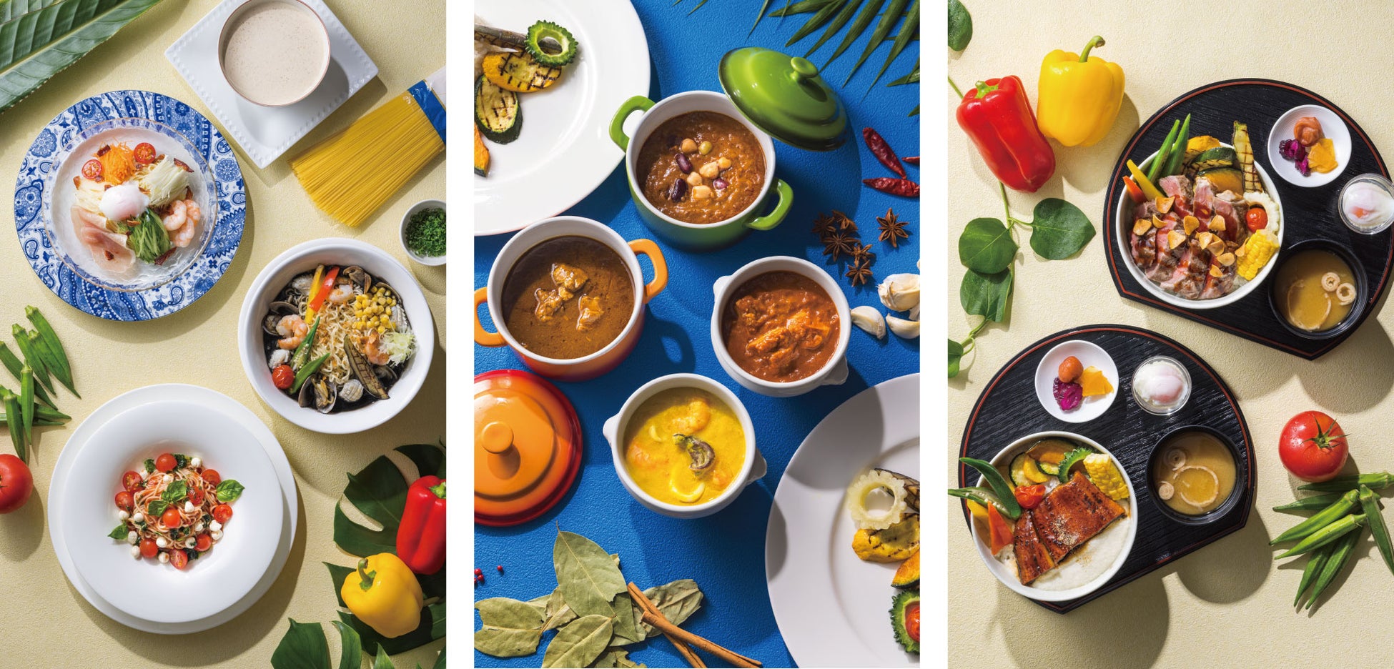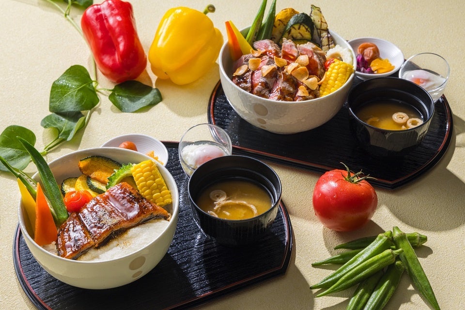 食欲が落ちがちな夏こそ、しっかり食べて元気をつけていただきたいという想いから、当ホテル料理長 片之坂 亨が考案した夏の“推しメシ”をご用意します。夏バテ対策として注目されるスパイスを使ったカレー、さっぱりと食べやすい夏らしいアレンジのパスタ、エネルギーチャージにぴったりな食べ応えのあるスタミナ丼の3ジャンル、全9種のメニューから、その日の気分やお好みに合わせてお選びいただけます。メニューには、じっくり煮込んだ牛すじの旨味と、程よいスパイスが重なり合う「牛すじ柔らか煮の欧風カレー&ライス彩り野菜添え」や、めんつゆを加えた和テイストのカルボナーラ風ソースで楽しむ「カペッリーニのカルボナーラ風、冷やしつけ麺仕立て」、にんにくを醤油に漬け込み熟成させたオリジナルソースが食欲をそそる「ガーリックステーキと夏野菜の丼 温玉添え」など、夏の暑さに負けない工夫を凝らしたメニューが揃います。また、他では味わえないこだわりとして、ビュッフェスタイルで提供するサラダコーナーには、地元・武蔵野市の「こびと農園」で丁寧に育てられた野菜を一部メニューに使用しており、地元の旬の恵みを活かした味わいを感じていただけます。