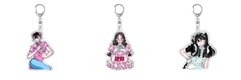 アクリルキーホルダー チャイナマツヤ/ピンクマツヤ/メイドマツヤ 各¥1,100(税込)