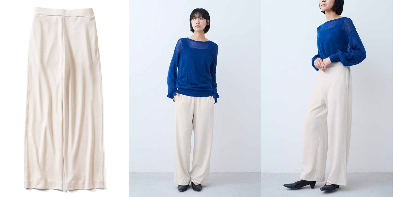 【NEW】IEDIT[イディット] らくちんでキレイ見えする ポンチカットソーのとろぷるセミワイドパンツ