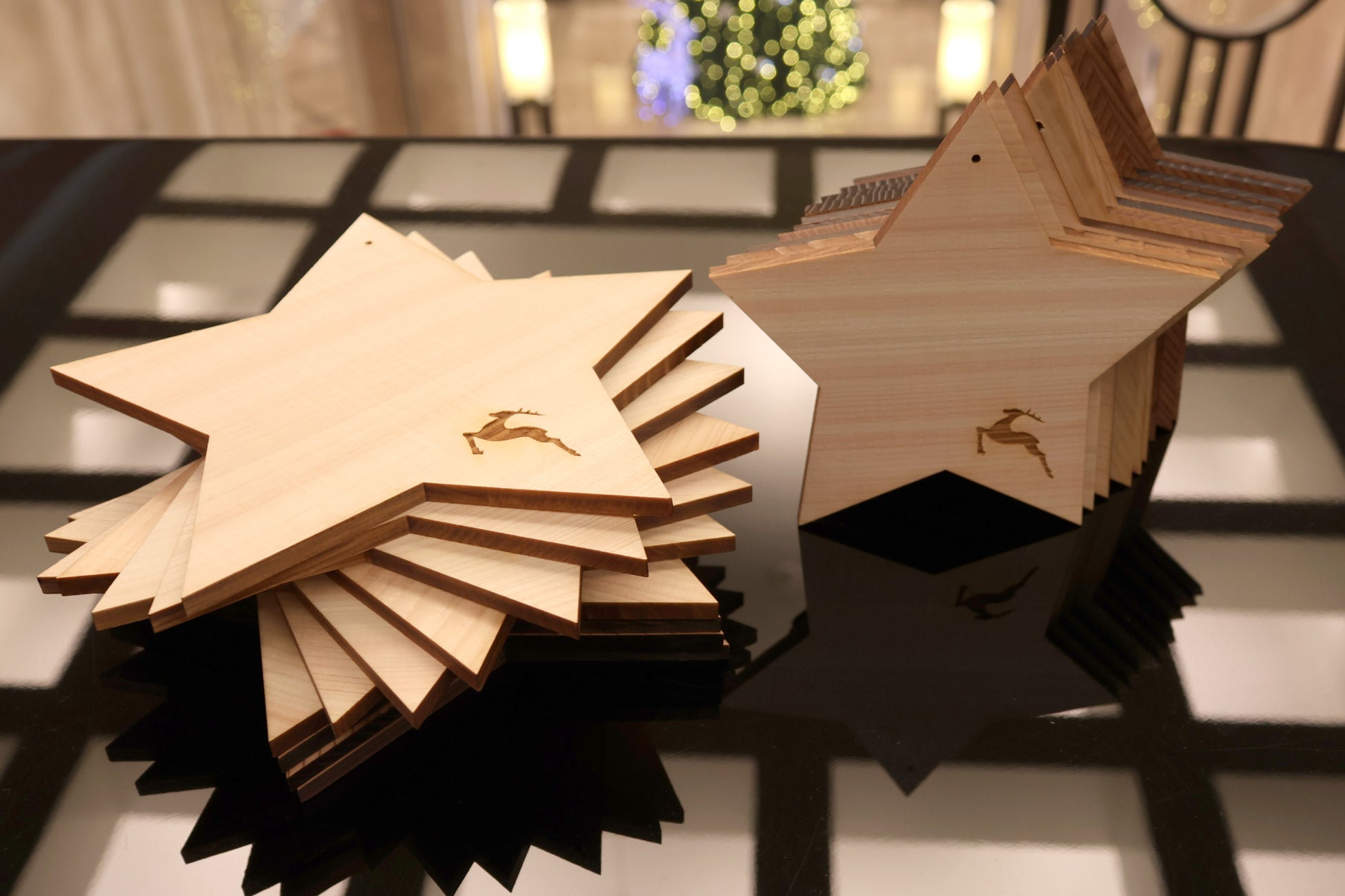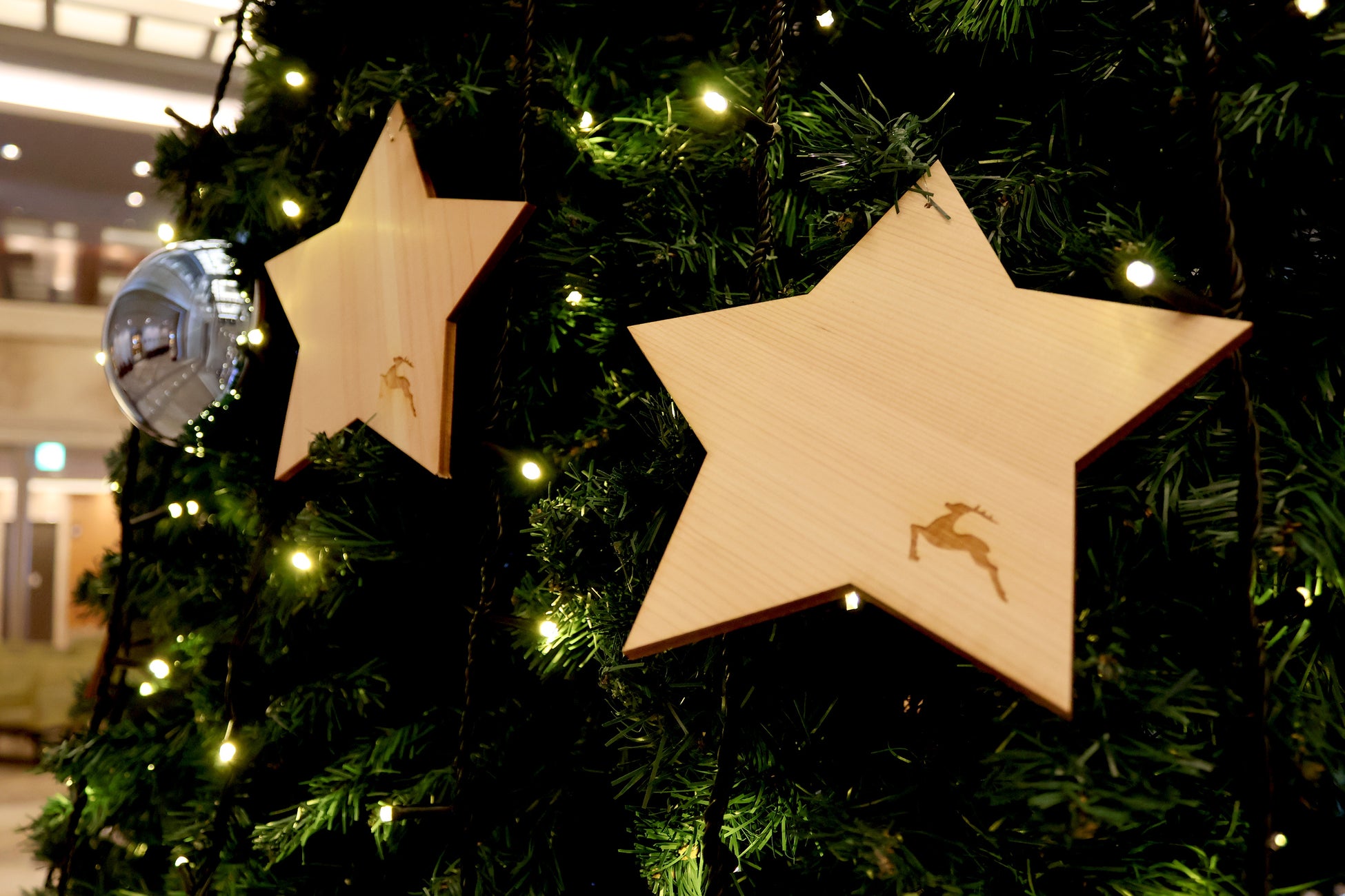 本年は自然豊かな奈良県吉野をテーマに、「吉野の森と水」を表現したツリーが登場いたします。吉野杉と吉野檜を使った星形のオリジナルオーナメントからはほのかに木の香りが漂い、穏やかで心やすらぐひとときを演出いたします。奈良にお越しの際はぜひお気軽にお立ち寄りください。