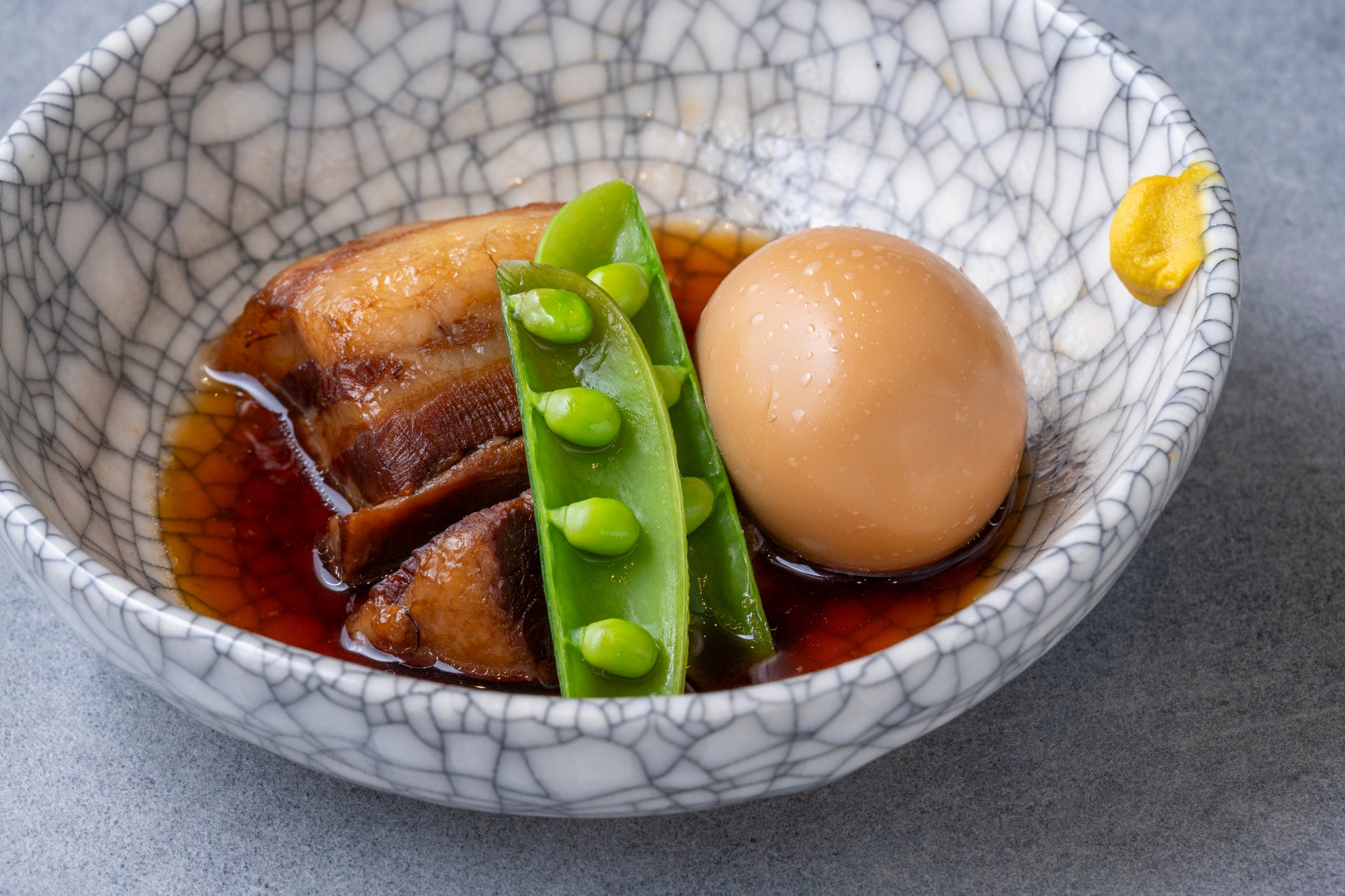 福島御膳の主役は「福島県産麓山高原豚の角煮」です。甘じょっぱさと旨味がしみ込んだ角煮が口の中でほろほろと解け、一緒に煮込んだ煮卵は豚肉の甘みが感じられるほど染みしみに。ちょっとお行儀が悪いですが、福島県産米「福、笑い」を用いたカツオご飯に乗せて、煮汁をかけてガッツリ食べたくなる一品です。また、併せて提供しているメヒカリの一夜干しや真イカのあん肝和えと共に、お酒が進むこと請け合いです。開催期間中に10周年の節目を迎えることから、今回は福島御膳をご注文のお客さまに限り生ビールを100円で提供するため、ぜひ一緒に味わっていただきたいメニューです。