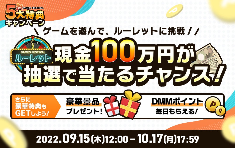 毎日DMMポイントがもらえる!『秋のDMM GAMES FESTIVAL』開催!さらに現金100万円や限定のオリジナルグッズなども抽選でプレゼント!