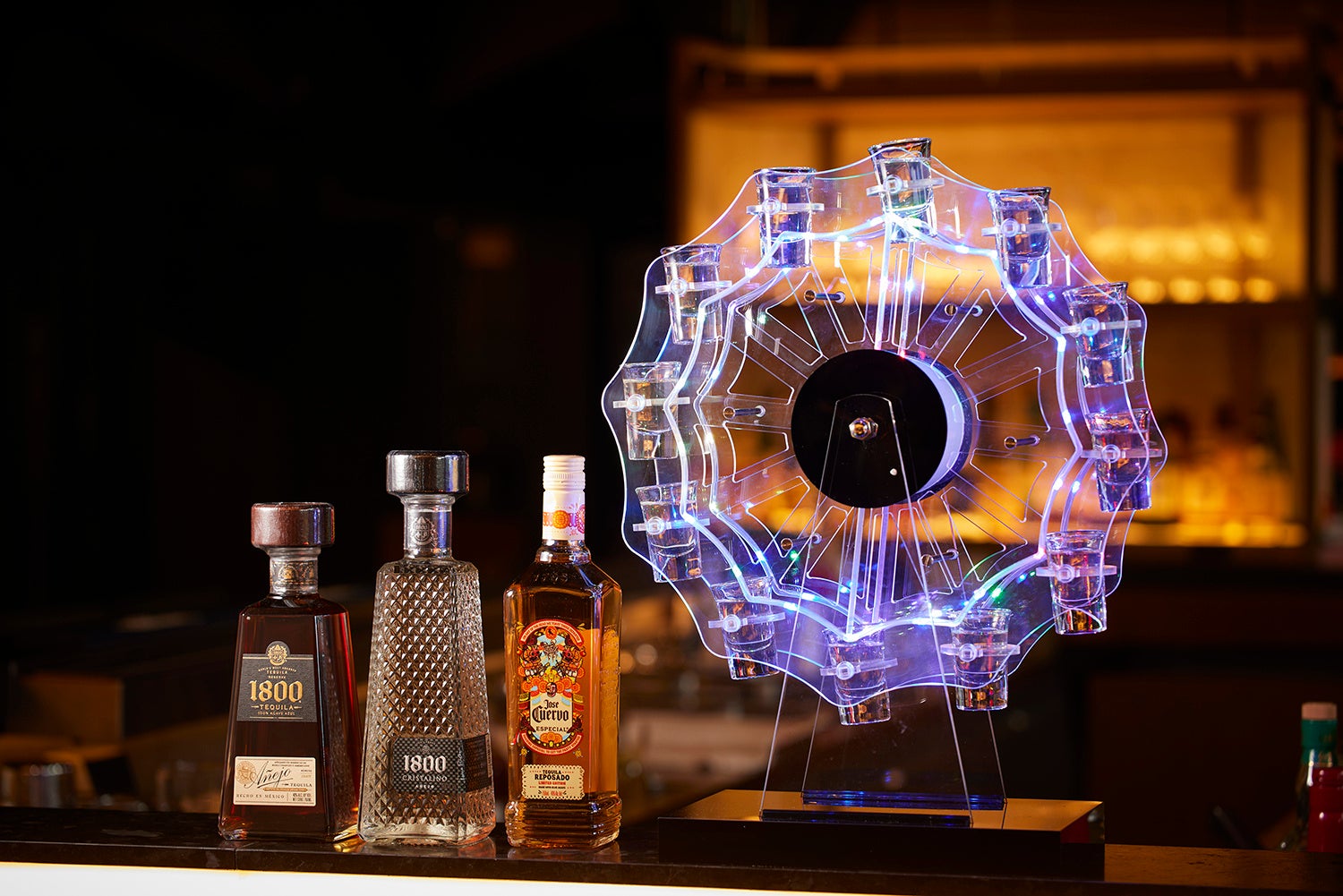 さらにグループで賑やかに楽しみたい方のために、テキーラ観覧車もご用意いたします。12のショットグラスのうち2つにはハズレが入り、ゲーム感覚で盛り上がっていただけます。