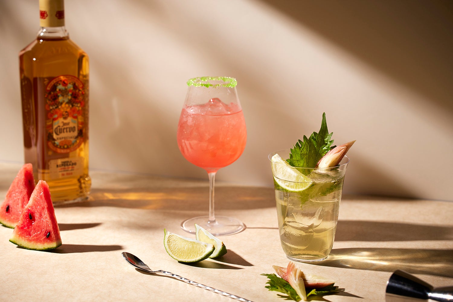 季節ごとにメニューを変えるシーズナルカクテルでもクエルボ ゴールド レポサドをつかった夏にぴったりの2種類が登場します。スイカやオレンジなど夏のフルーツが混じり合っていくイメージで考案したWheel of Evolutionはトロピカルな味わい。ミョウガ、大葉という日本を代表する薬味がメキシコ生まれのテキーラとセッションするイメージのJAM Diabloは、悪魔という名前とは裏腹にすっきりと爽やかな飲み心地です。