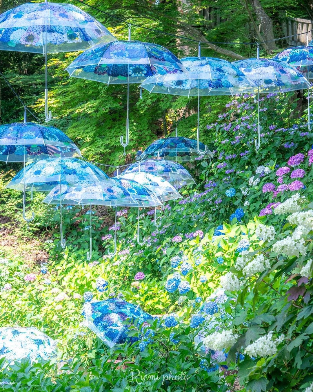 全国の紫陽花の名所ほかで「雨空に咲きこぼれる 紫陽花の傘」を用いて撮影した写真のコンテスト