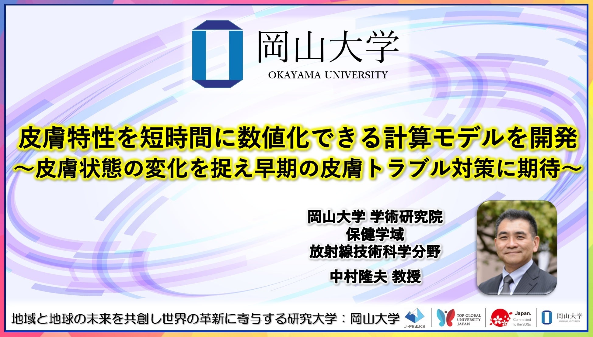 ・【岡山大学】皮膚を瞬時に数値化できる計算モデルを確立! ~皮膚疾患の予兆を捉え皮膚病を未然に防ぐ可能性へ~