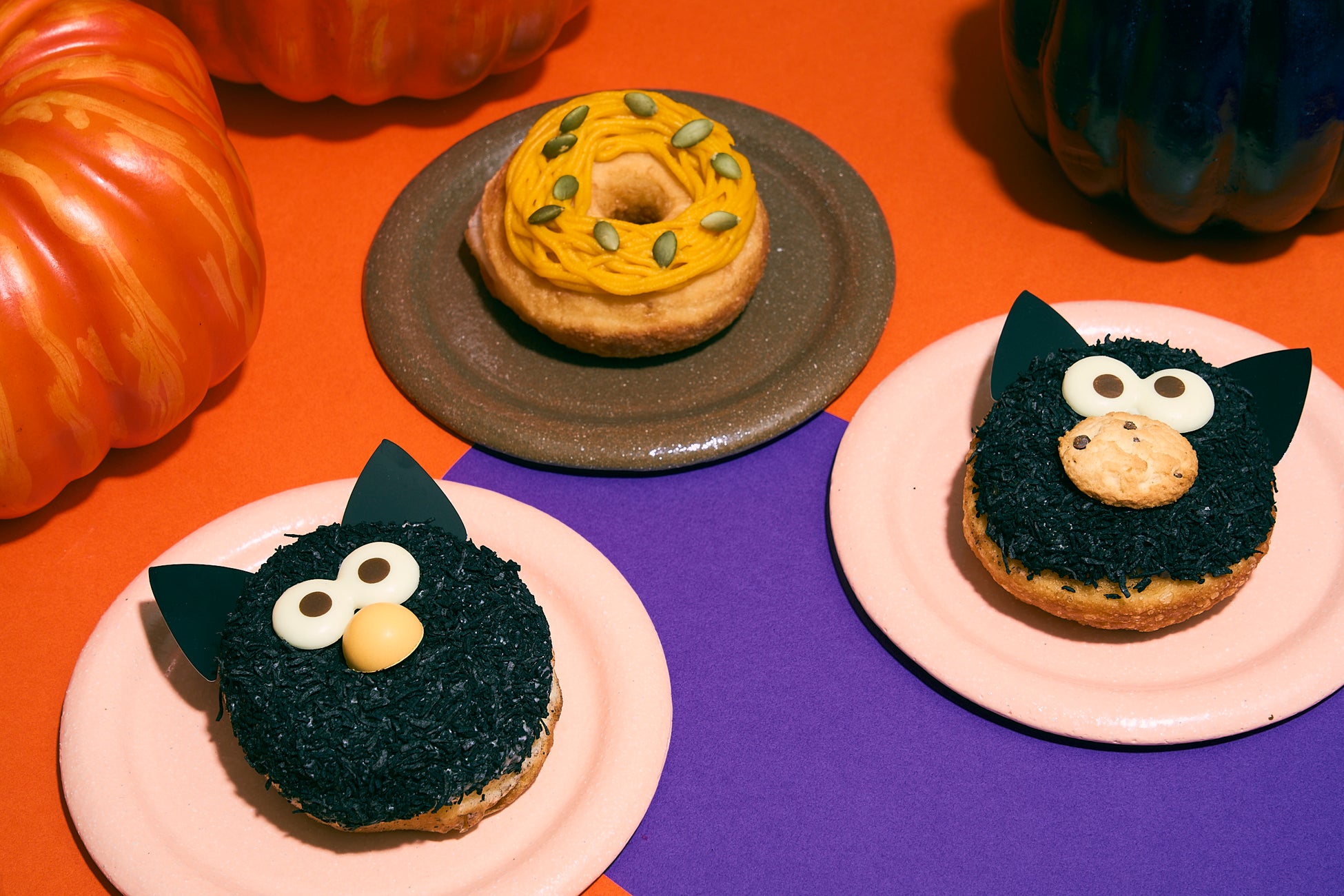 カフェでは、猫耳をつけて黒猫になりきったエルモとクッキーモンスターのドーナツが登場するほか、インパクト抜群のワッフルやかぼちゃの味わいを存分に堪能できるスイーツ、限定デザインのキャラクターラテなど、ハロウィン気分を盛り上げるメニューを豊富にご用意しました。