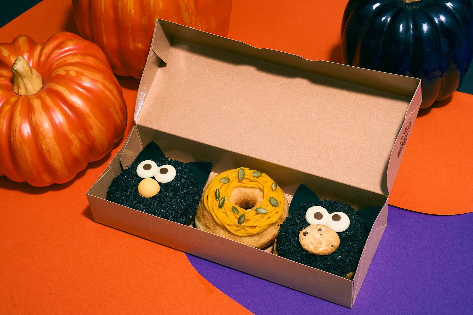 ハロウィン限定のドーナツ3種をセットにした、見た目の楽しさと味わいのバリエーションを一度に堪能できるドーナツBOX。
