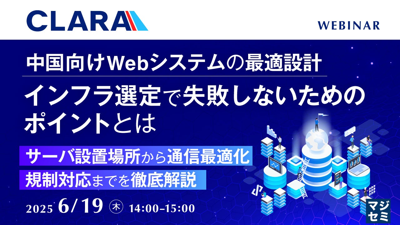 マジセミ株式会社は「中国向けWebシステムの最適設計、インフラ選定で失敗しないためのポイントとは」というテーマのウェビナーを開催します。