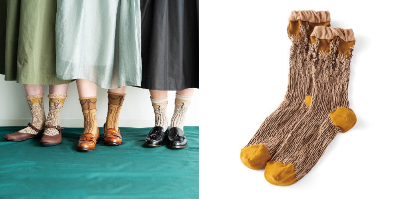 多様なデザイン性が魅力の縄文土器を立体的なデザインで楽しめるソックスです。