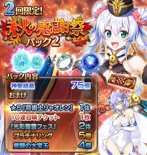最高レアのユニットを無料でGET!人気投票やお得なパック販売などお楽しみが盛りだくさんの秋の感謝祭キャンペーンをDMM GAMES『千年戦争アイギス』シリーズにて開催中!