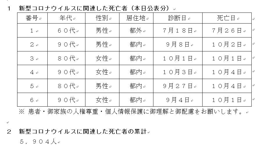 都内で新型コロナウイルスに感染した方が死亡されましたのでお知らせします。