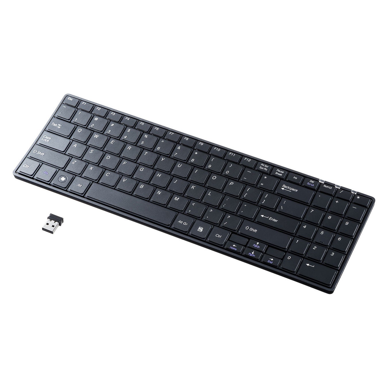 「SKB-WLE2UBK」は、英語配列の2.4Gワイヤレスキーボードです。