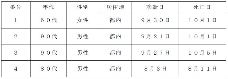 都内で新型コロナウイルスに感染した方が死亡されましたのでお知らせします。