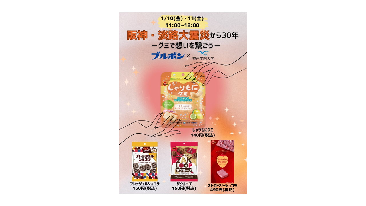 阪神・淡路大震災の想いをつなぐ!「ブルボン×神戸学院大学」の共同開発商品を神戸マルイにて期間限定販売!