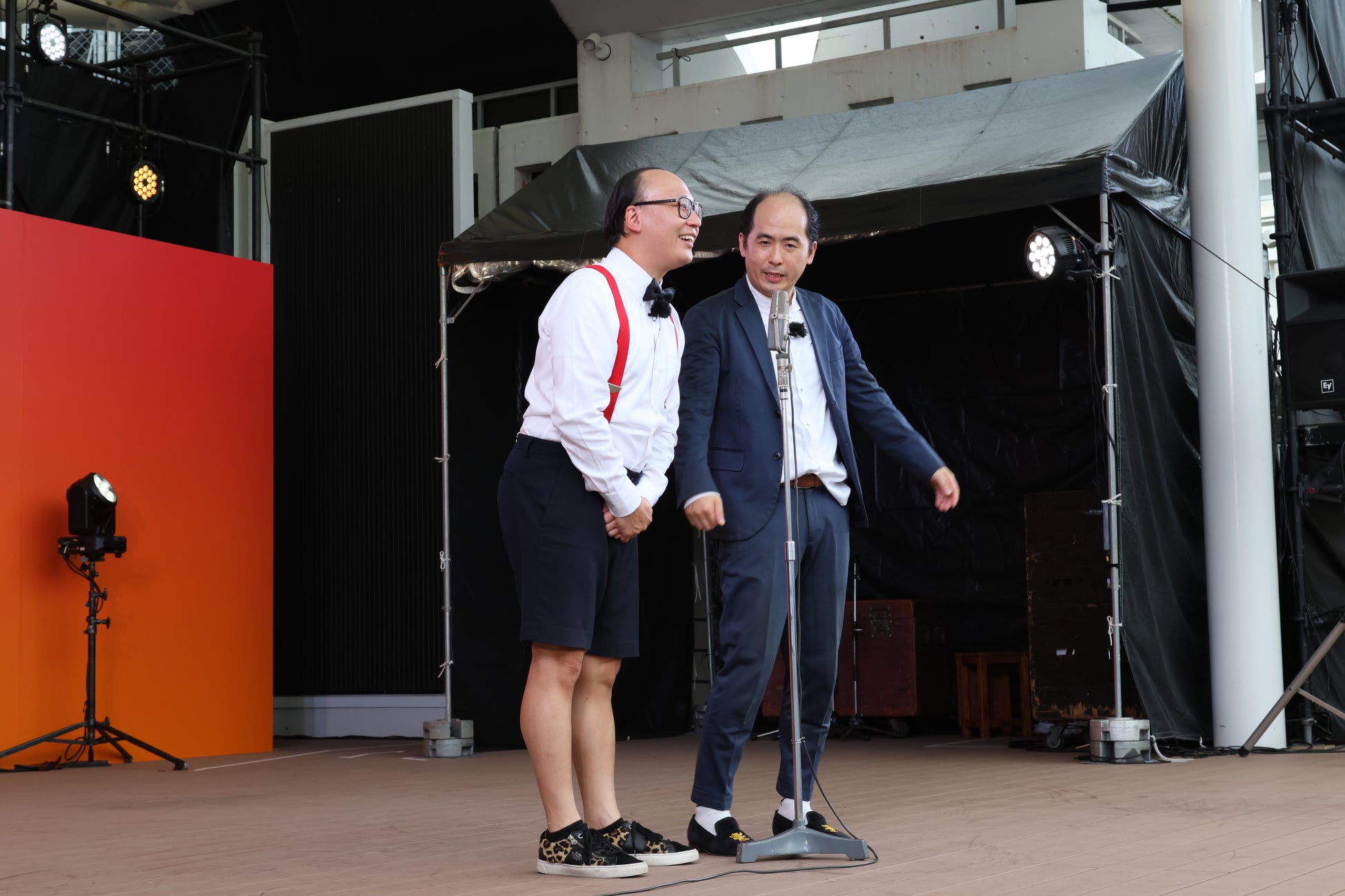 音楽ステージのほうでは、テンダラーの白川率いるジ・白川バンドが登場。白川に加え、ボーカルの高井俊彦もアラフィフというロックバンドですが、熱いステージを披露。さらに、トリを務めたのは沖縄発の歌謡曲パフォーマンス集団であるデラックス×デラックス。「恋してよDISCO」などを熱唱し、会場のボルテージも最高潮に! 圧巻のパフォーマンスは、ぜひタオル片手に見てください。