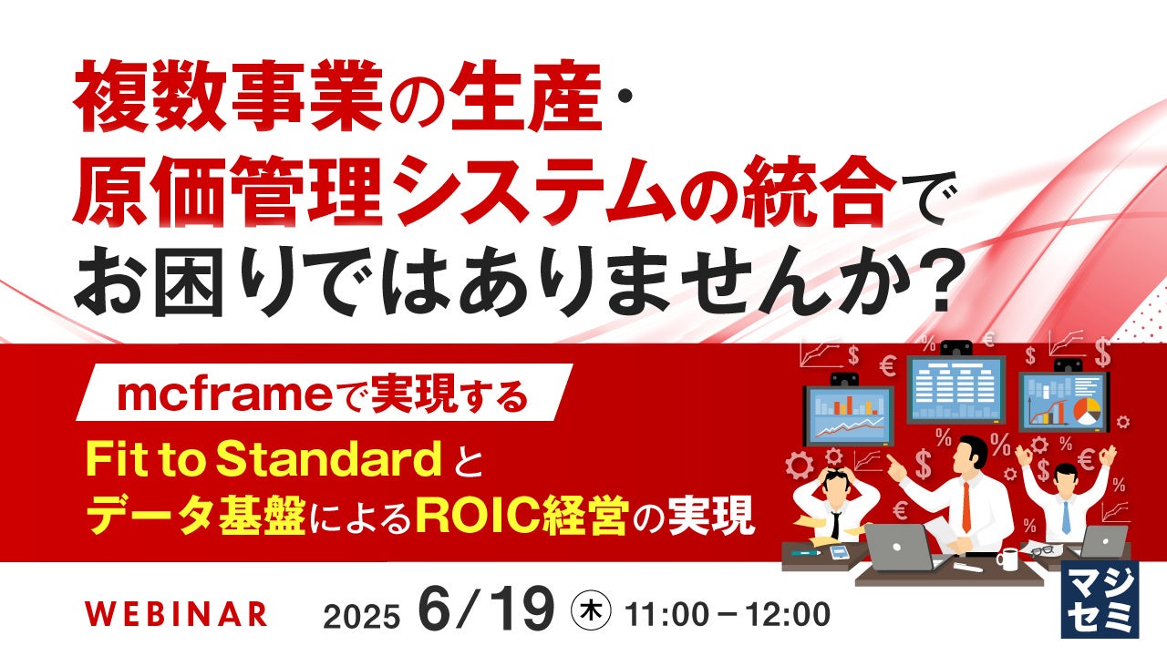 マジセミ株式会社は「複数事業の生産・原価管理システムの統合でお困りではありませんか?」というテーマのウェビナーを開催します。