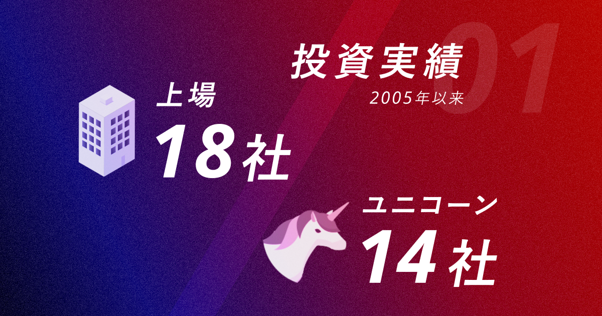 これまで投資を行ってきた通算約200社の投資先からは18社が世界各国の株式市場に上場しているほか、ユニコーンが14社誕生しています。(別紙参照)