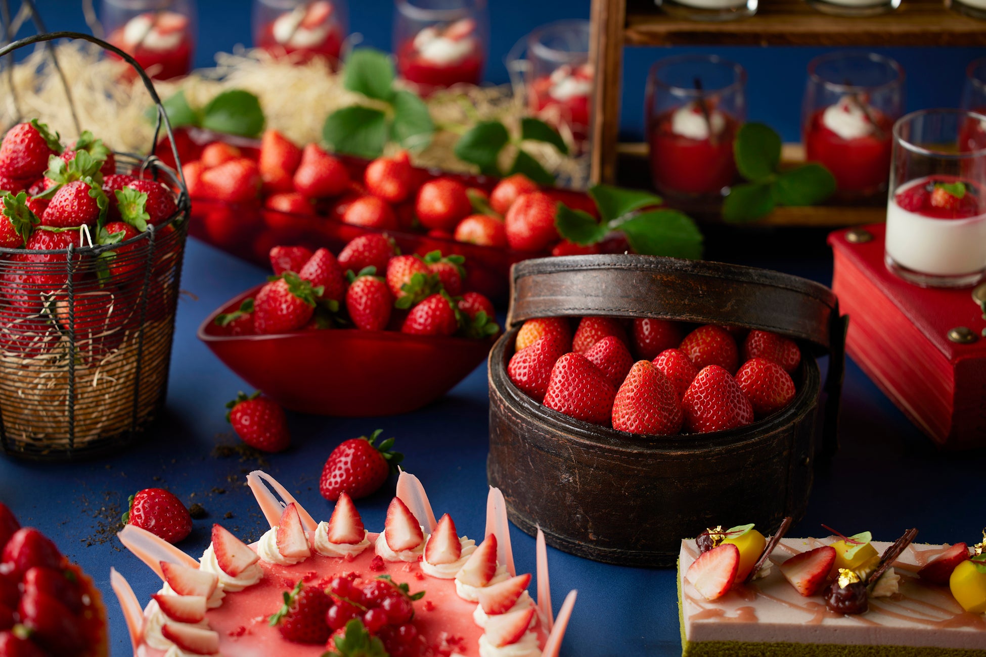 シェフ厳選のいちご4種贅沢食べ比べなど、いちごが主役のデザートブッフェ付きご褒美ランチで至福のひとときを。