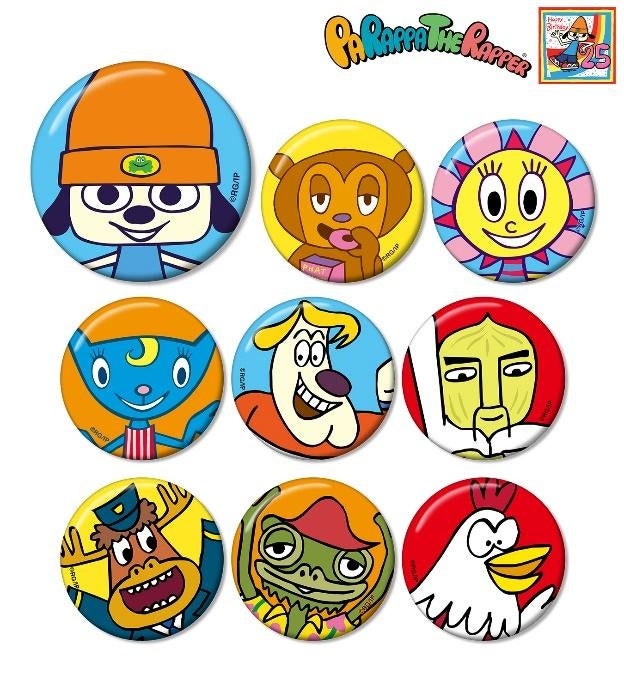 パラッパ、PJベリー、サニーファニー、ケイティ キャット、ジョー チン、チョップチョップ マスターオニオン、インストラクター ムースリーニ、ミスタープリンスフリースワロー、チープチープザクッキングチキンを缶バッジに仕上げました。