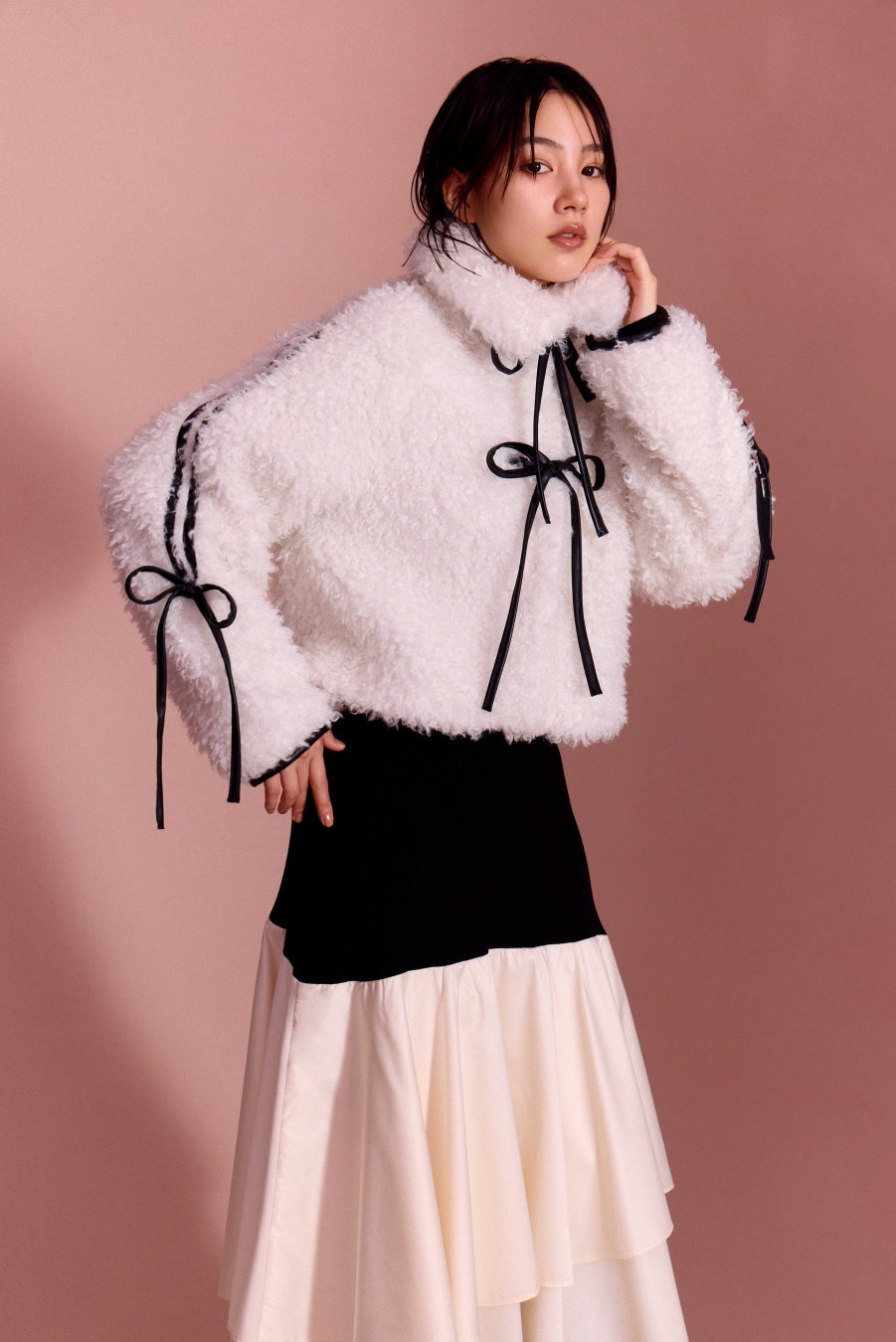 親和性の高い今回のコレクションを大人の雰囲気で着こなしてくれました。
