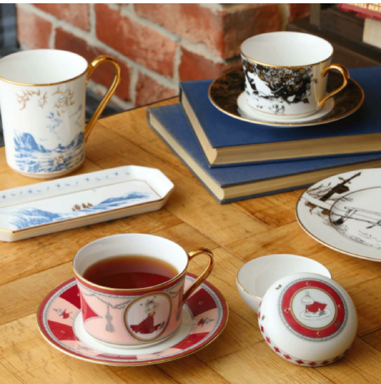 ムーミンの物語の中でも人気の「ムーミン谷の彗星」「ムーミンパパ海へいく」「ムーミン谷の夏まつり」。それぞれの物語の印象的な挿絵があしらわれたノリタケのテーブルウェアシリーズ。遊び心が随所にちりばめられたデザインが、メルヘンの世界へと誘ってくれます。