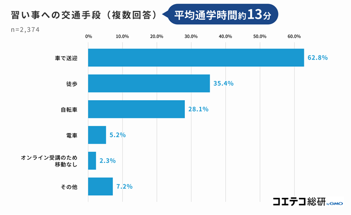 ■子どもの習い事「車で送迎」をしている保護者が多数派、平均通学時間は「約13分」