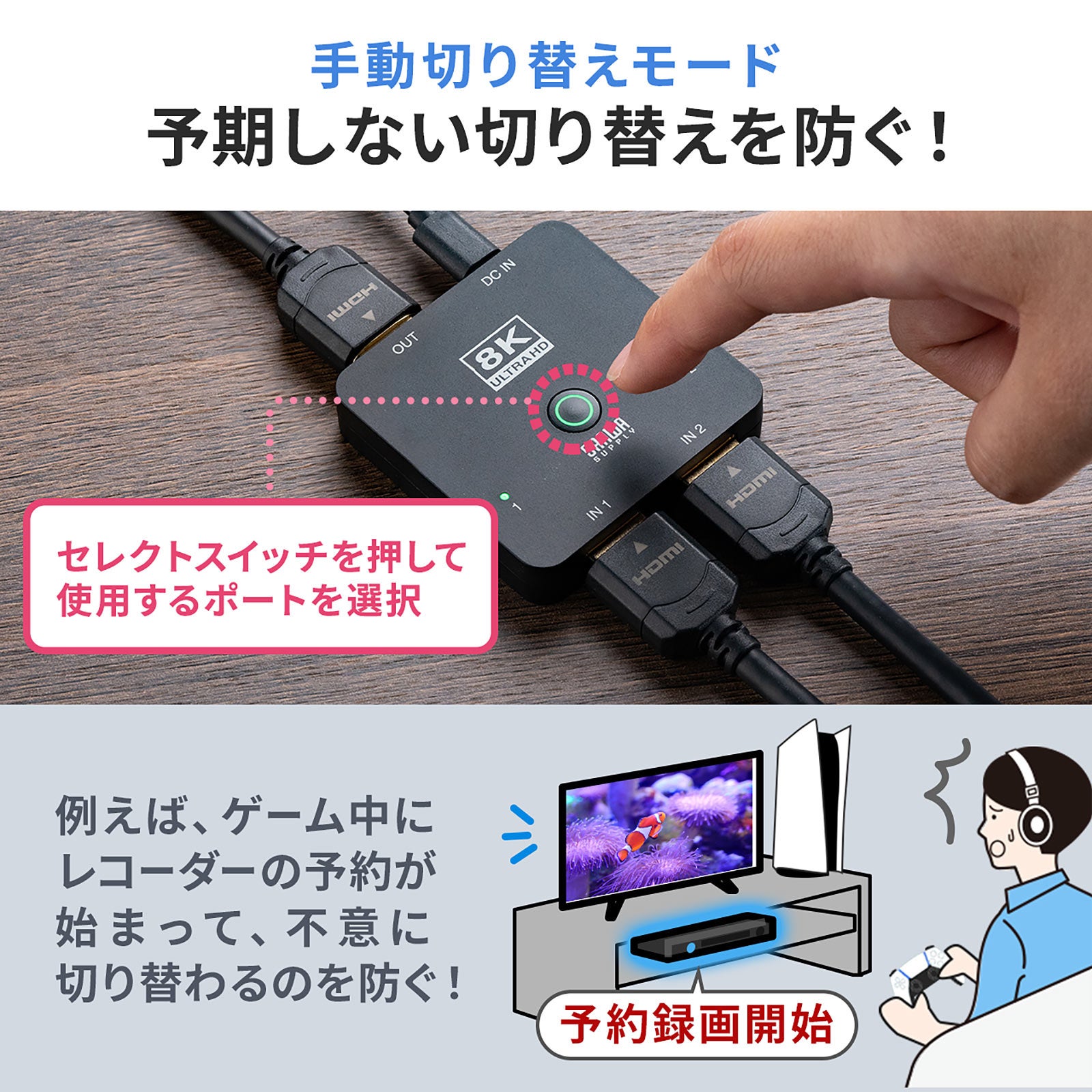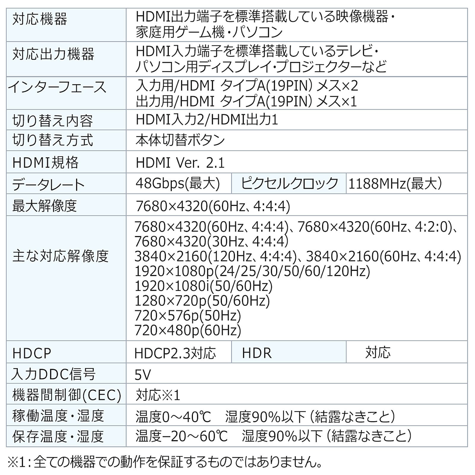 HDMI切替器 2入力1出力 8K/60Hz 4K/120Hz HDR対応