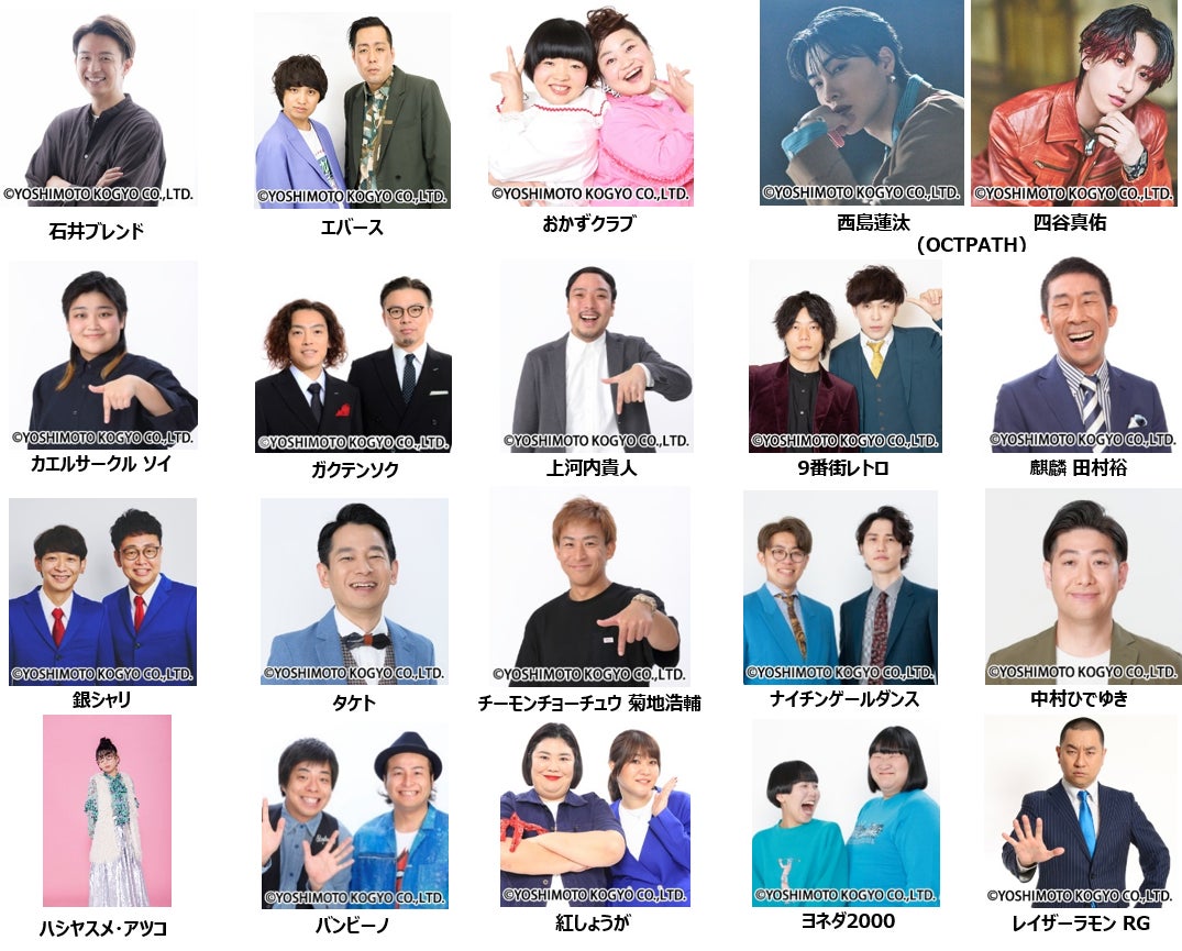 石井ブレンド、エバース、おかずクラブ、OCTPATH(西島蓮汰、四谷真佑)、カエルサークル ソイ、ガクテンソク、上河内貴人、9番街レトロ、麒麟 田村裕、銀シャリ、タケト、チーモンチョーチュウ 菊地浩輔、ナイチンゲールダンス、中村ひでゆき、ハシヤスメ・アツコ、バンビーノ、紅しょうが、ヨネダ2000、レイザーラモン RG