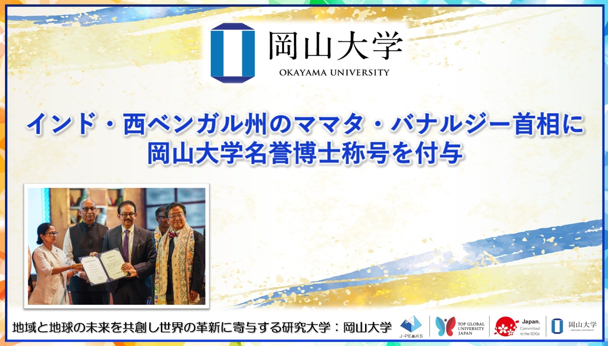 【岡山大学】インド・西ベンガル州のママタ・バナルジー首相に岡山大学名誉博士称号を付与