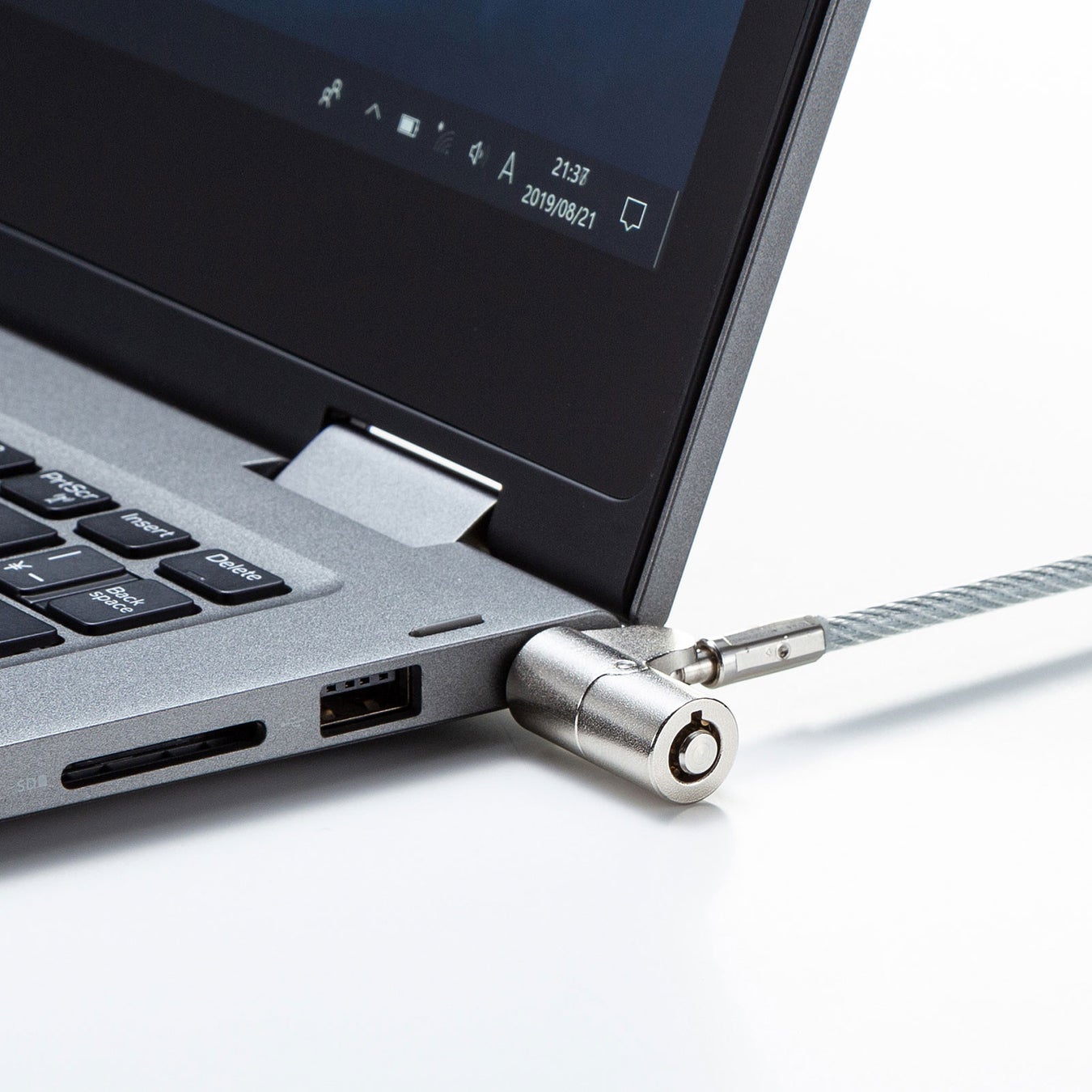対応スロットサイズは2.5×6mmで、Nano Saver搭載のノートパソコンで使用できます。シリンダが非常に小さいので、取り付け時に本体が浮かず、薄型のノートパソコンにも最適です。