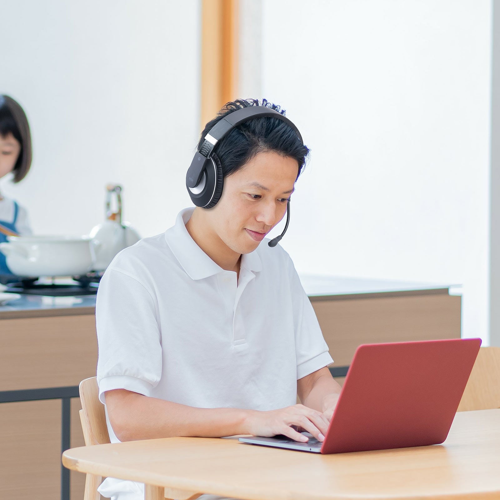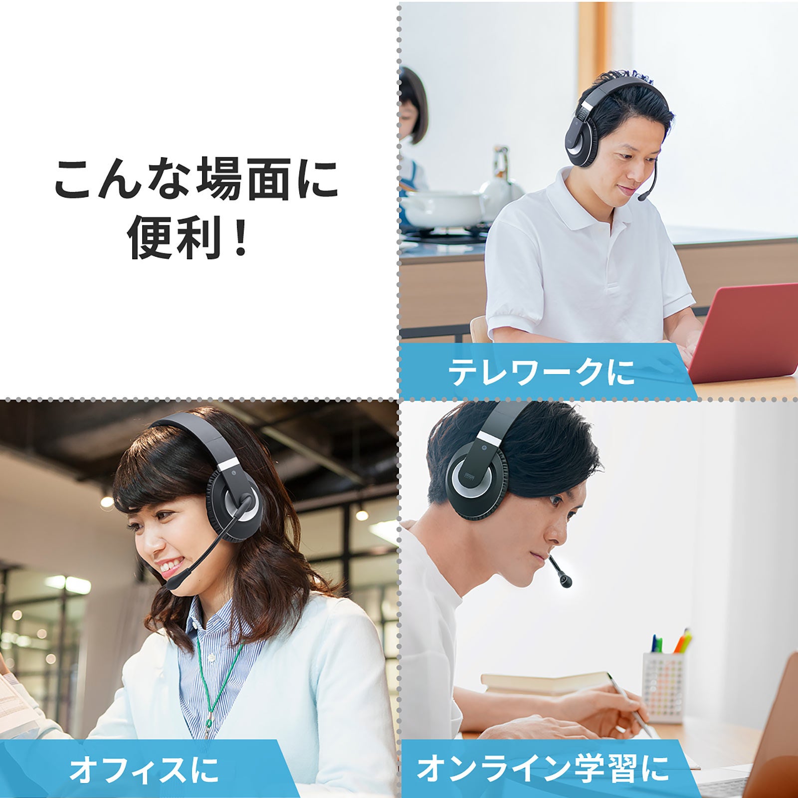 本製品は、音声に集中しやすい両耳タイプのBluetoothヘッドセットです。