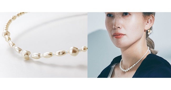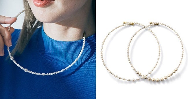 片手で持って首にはめるだけで、美しく決まる洗練パールのネックカフです。留め具がないので両手を使わないとできないような細かい動作が必要なく、誰でもらくにおしゃれを楽しむことができます。デザインはカジュアルな装いにも華を添える〈ライスパール〉と、オケージョンにも使えそうな上品な雰囲気の〈コットンパール〉の2種類です。2つそろえておけば、その日の気分やシーンに合わせて選ぶ楽しみも増えます。