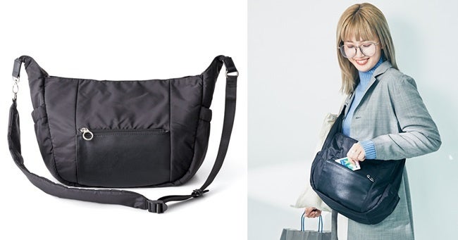 ショルダーを片手でも外しやすいようにカニカンが本体側に付いているなど、細部に思いやりが感じられるデザインです。直接お金を入れてお財布代わりにできる外側の「お財布ポケット」は、片手で扱いやすいのはもちろん、ロック機能付きファスナーになっていて安心です。