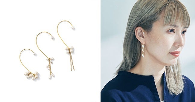 片耳にかけるだけで華やかな雰囲気になる、存在感抜群のイヤカフです。片手で耳にかけて、フィット感を調整するだけなので、取り外しのストレスなく楽しむことができます。シンプルスタイルにプラスするだけで、おめかしモードが完成するのもうれしいポイントです。パールの効果で顔まわりもパッと華やぎます。デザインは〈コットンパール〉〈ライスパール〉〈バロックパール〉の3種類です。表情の違うパールのデザインバリエをそろえておけば、コーデの幅も広がりそうです。