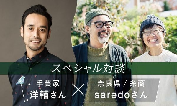 また、講演の後半では、日本一の靴下生産地である奈良県で、1948年より糸の卸会社を営んでいる「萱澤(かやざわ)商店」の萱澤さんご夫妻が2014年に立ち上げたブランド「saredo/されど」さんを迎えます。手芸家・洋輔さんとスペシャル対談をお楽しみください。