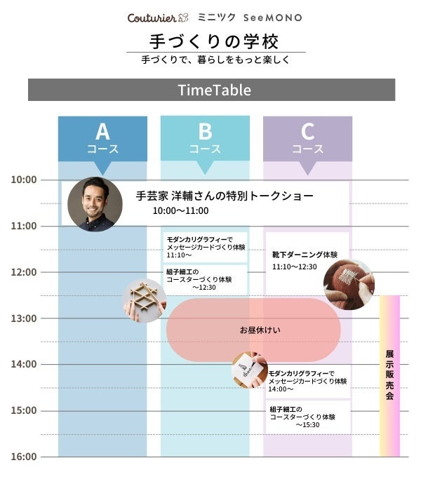 手芸家 洋輔さんの特別講演や手づくりをテーマにした3つのワークショップイベント