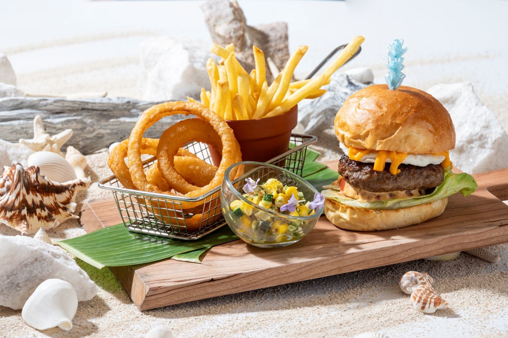 2025年夏は、昨年・一昨年に続き全国的に猛暑が予測されています。渋谷スクランブル交差点を直下に見下ろす渋谷エクセルホテル東急にあるラウンジ「エスタシオン カフェ」の夏の時期には、都会のコンクリートの照り返しや人混みで汗だくのお客様が多く来店されます。昨年5月に渋谷区がハワイ州ホノルル市と姉妹都市提携※1をしたこともあり、日本の酷暑にお疲れ気味のお客様に爽やかなハワイの味と雰囲気を味わっていただきたく、今夏、このカフェラウンジで初となる『Hawaiian Loco Fair』を開催いたします。「Loco(ロコ)」はハワイ語で地元の人、または地元風という意味です。ジューシーでボリュームのあるハンバーガーや、ニンニクと海老のうま味を利かせたライスプレート、冷たくてヘルシーなハワイアンスイーツ、ハワイのドリンクもご用意いたします。またフェアの期間は、カフェのスタッフがアロハシャツを着て笑顔でお客さまをおもてなし。店内の雰囲気からもハワイの夏を感じていただけます。