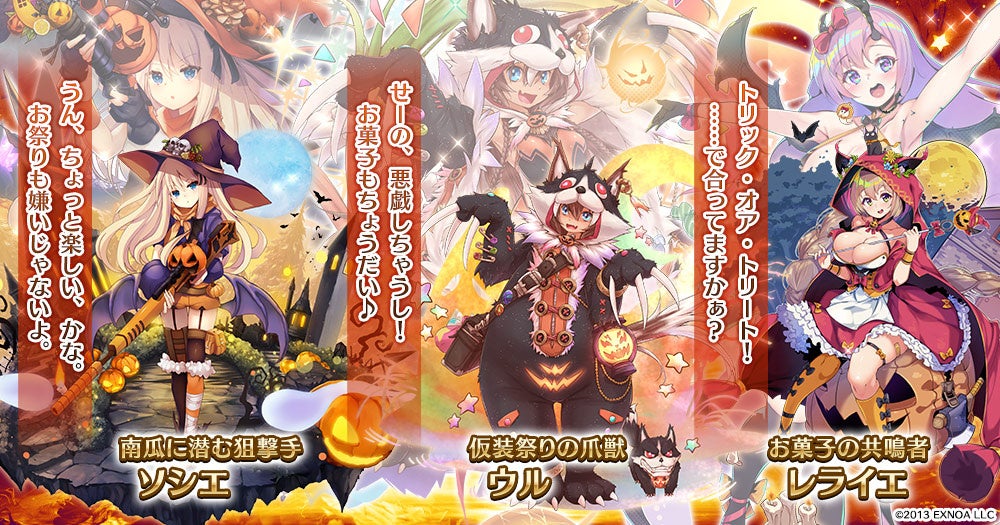 ※『南瓜に潜む狙撃手ソシエ』『お菓子の共鳴者レライエ』『仮装祭りの爪獣ウル』は、ハロウィンプレミアム召喚からのみの出現となります。また、今後の更新にて再度出現する場合があります。