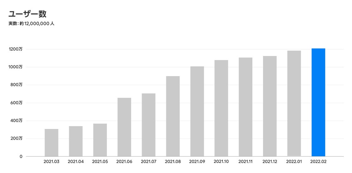 2021年3月のサービス開始から順調にユーザー数を伸ばし、1周年を迎えた現在までに約1,200万人*1を超えるユーザーにご登録いただいており、単発雇用サービスとして、国内最大規模の登録ユーザー数*2となりました。