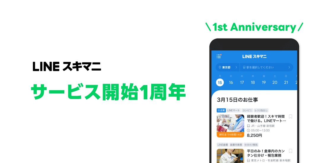 LINEの単発雇用マッチングサービス「LINEスキマニ」 サービス開始1周年を記念し、期間限定キャンペーンを開催!