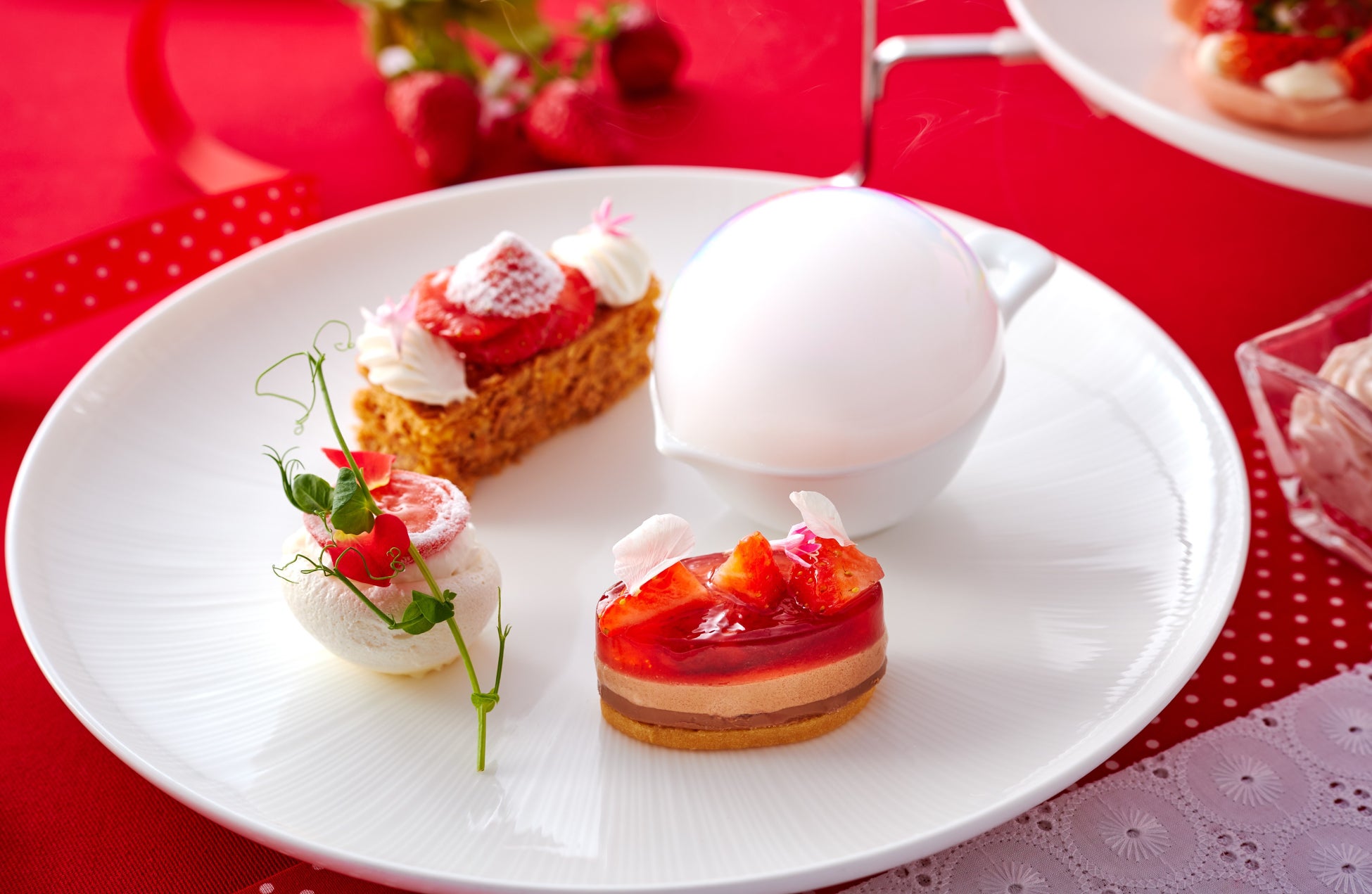 みずみずしい苺を多彩なアレンジで味わい、その魅力をさらに感じていただけるアフタヌーンティーをぜひご堪能いただきたいと考えております。