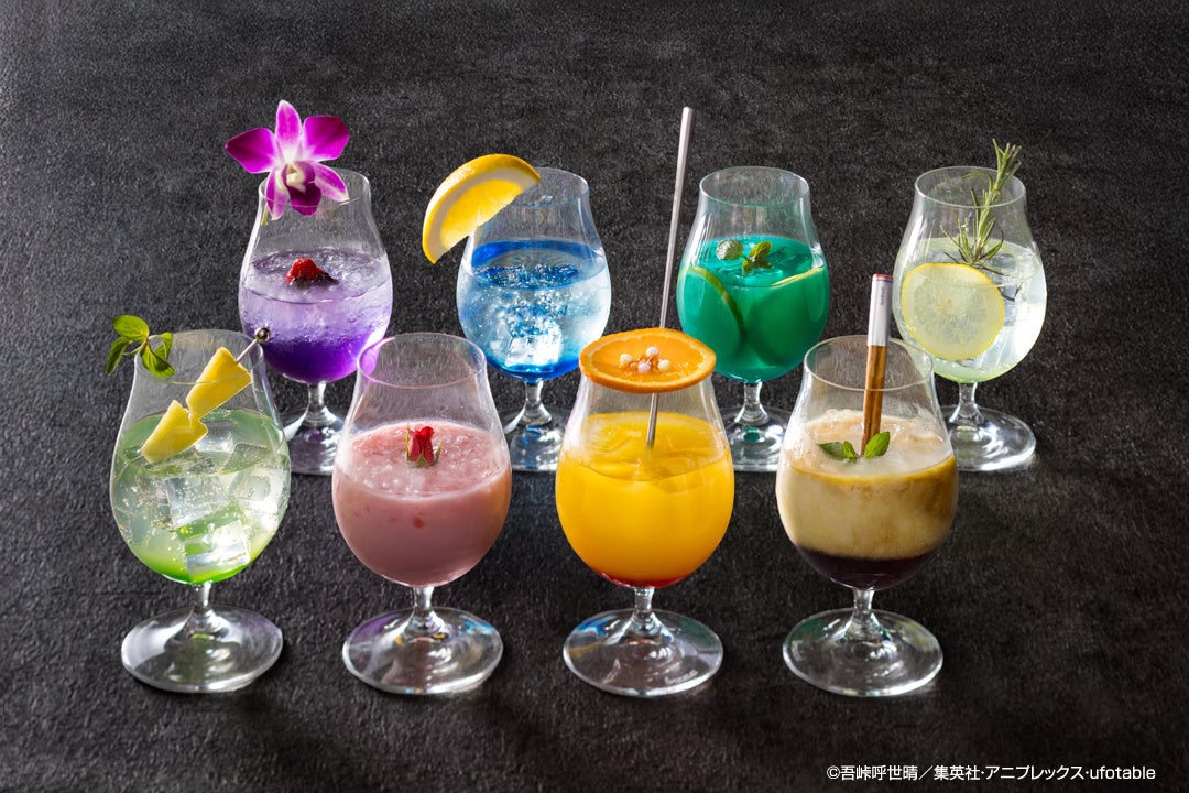 様々な味・食感が楽しめる見た目にも楽しいドリンクは、キャラクター別に8種類。ドリンクと同じキャラクターのufotable描き下ろしイラストをデザインしたコースターを1枚プレゼント!(ブッフェ利用者のみ注文が可能。ブッフェ料金には含まれておりません)
