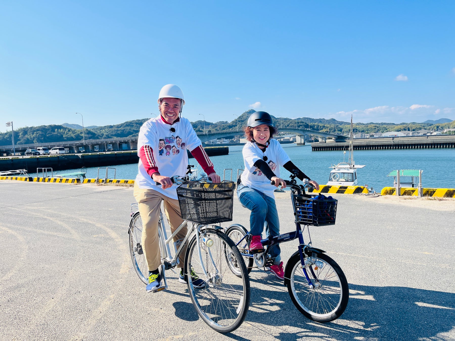 平生町初心者の2人が地域の人々と交流しながら自転車をこぐ!