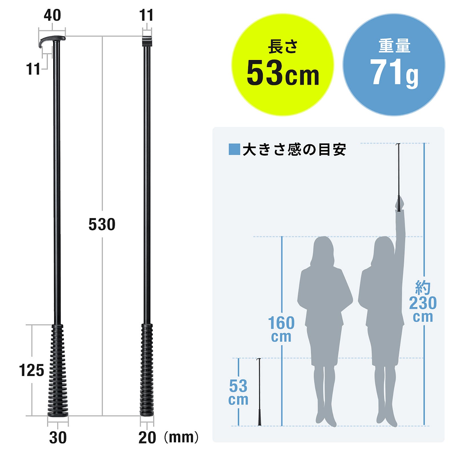 スクリーンフック棒 長さ53cm アルミ使用 軽量 プロジェクタースクリーンフック 引掛け棒