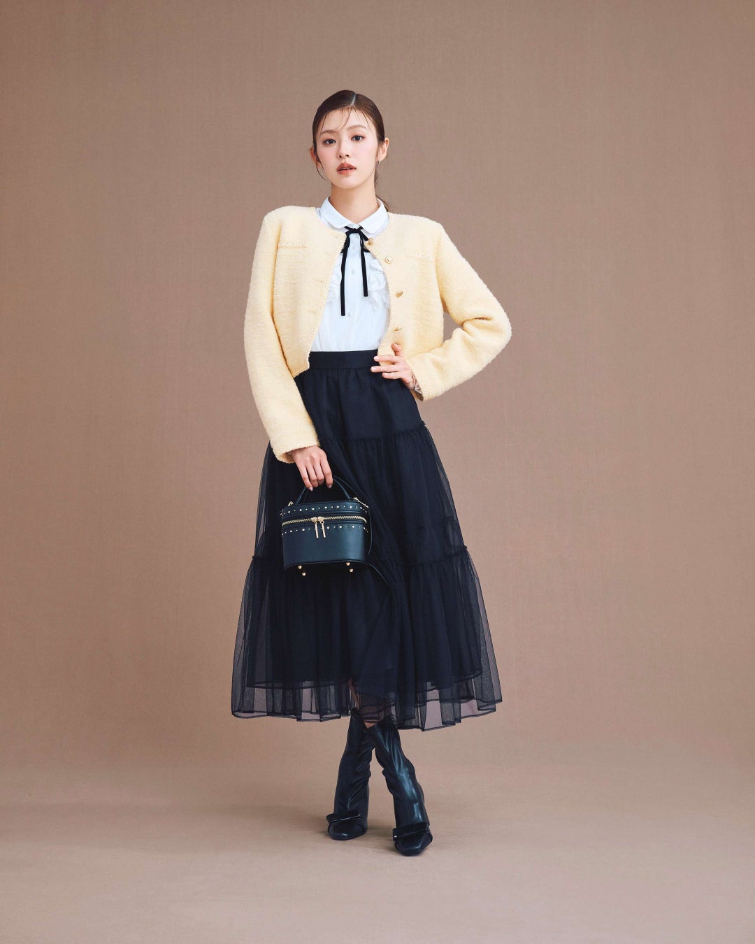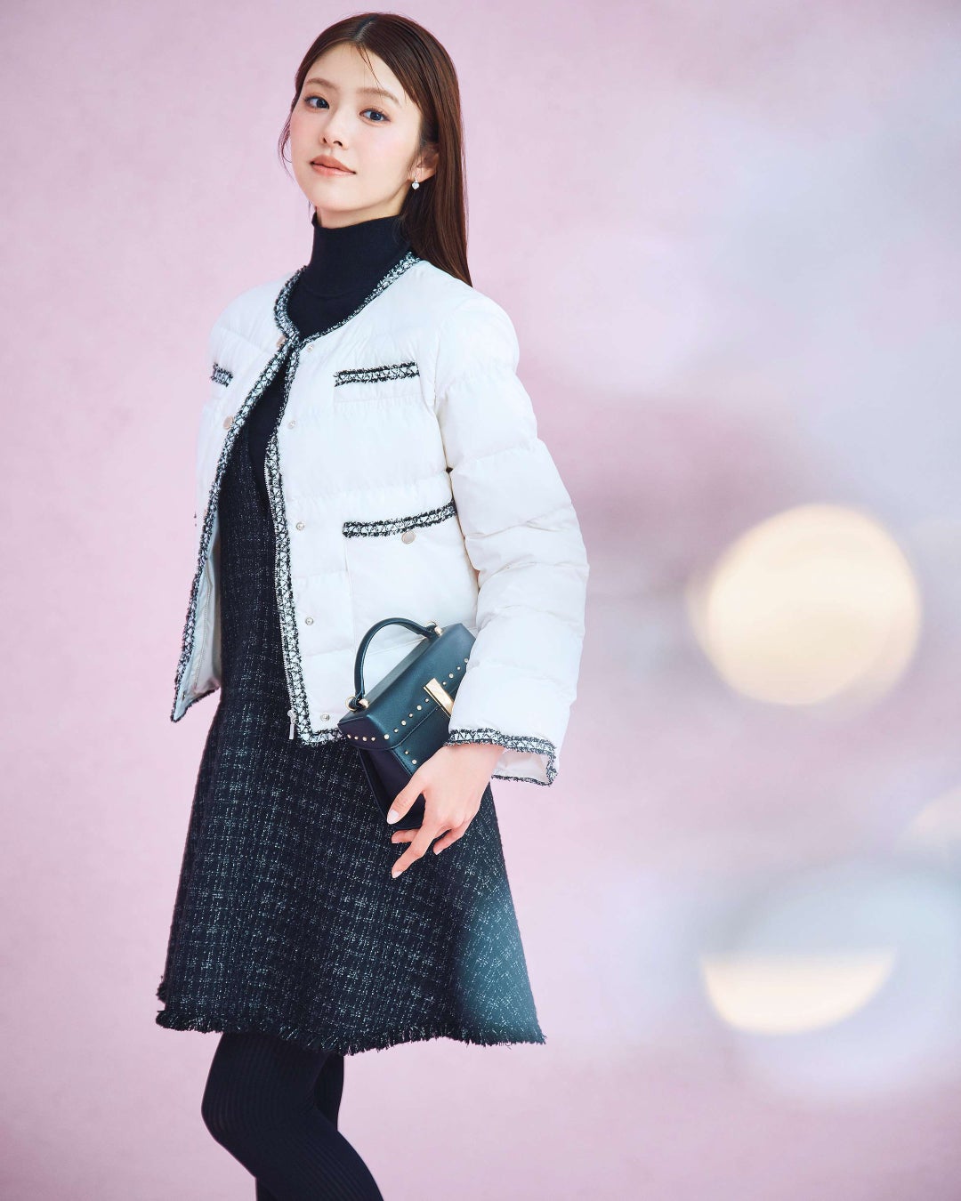 特別なシーンや気分を上げたい日、一段とオシャレをしたい時に着たくなるのがCELFORDのお洋服です。撮影中も新作のアイテムにずっとトキメキが止まらなかったです! 特にホースモチーフのワンピースに、ふわふわのアウターのコーディネートがお気に入り。ミニ丈だけど上品さがあって、私もこの冬に取り入れたい一着です。