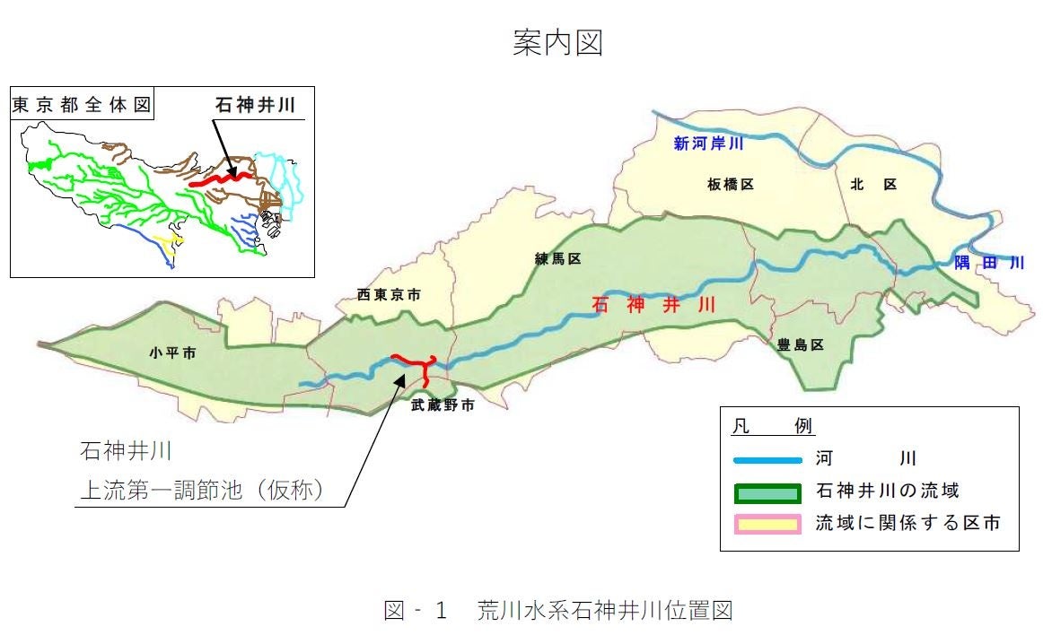 このたび、石神井川流域において、年超過確率1/20 の規模の降雨に対応するため、石神井川上流第一調節池(仮称)の都市計画事業の認可を取得し、整備に着手しますのでお知らせします。