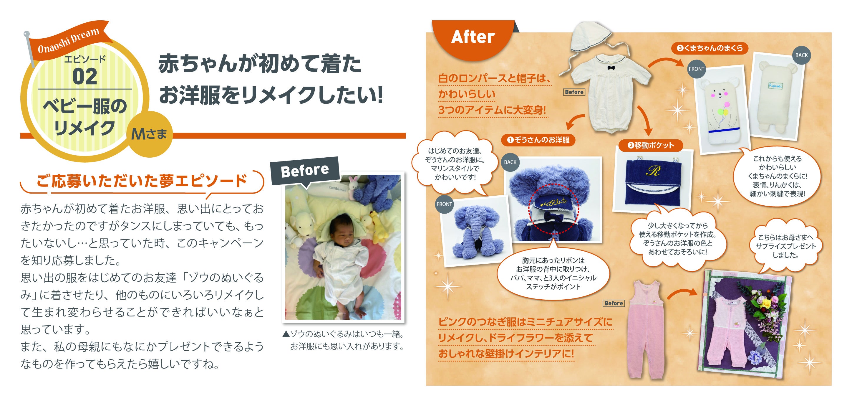 お気に入りのもの、大切なものをお直しやリメイクして生まれ変わらせる「サステナブルファッション」実現への取り組みとして第7弾「お直しドリームキャンペーン」を開催し夢の実現レポートを公開しております。