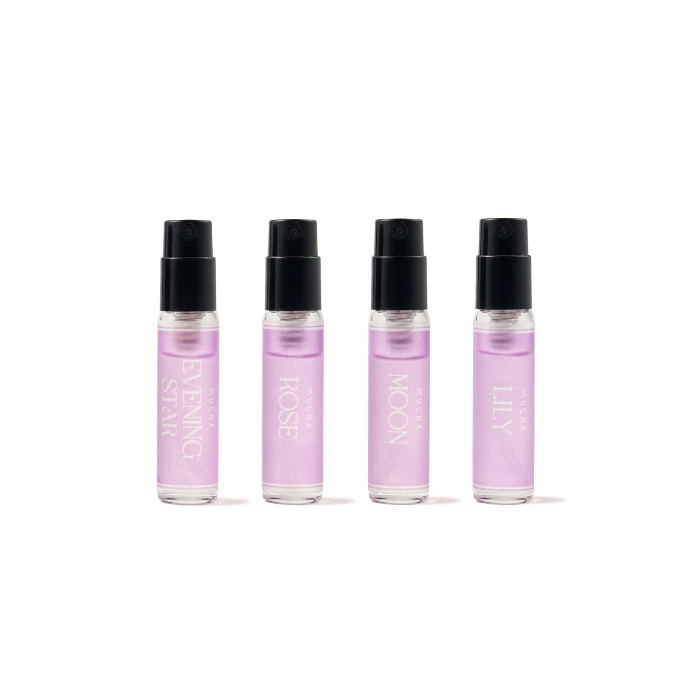 日常を少し特別に彩りたいとき、心を澄ませ静かに向き合いたいとき、花々や果実の余韻がそっと寄り添うフローラルノートを集めたオードトワレ4種のセット。