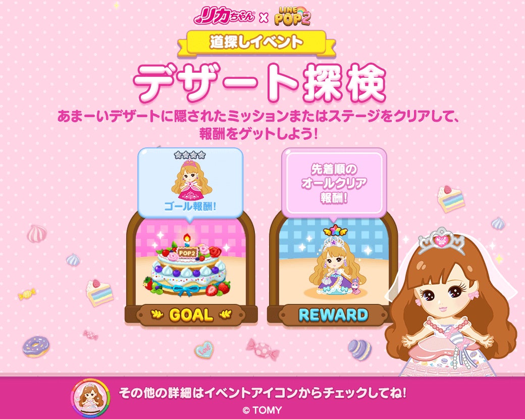 ミッションをクリアし、報酬を獲得しながら次の道へ進んでいく道探しイベントを開催します。リカちゃんたちにお菓子をプレゼントしてゴールを目指しましょう。ゴール報酬として「★4~★6 リカちゃん」をはじめ、豪華報酬がもらえます。ぜひ挑戦してくださいね。